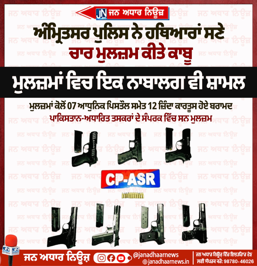 ਅੰਮ੍ਰਿਤਸਰ ਪੁਲਿਸ ਨੇ ਹਥਿਆਰਾਂ ਸਣੇ ਚਾਰ ਮੁਲਜ਼ਮ ਕੀਤੇ ਕਾਬੂ