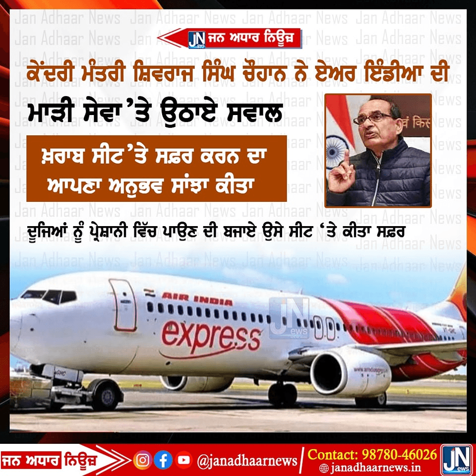 Posted inNews ਕੇਂਦਰੀ ਮੰਤਰੀ ਸ਼ਿਵਰਾਜ ਸਿੰਘ ਚੌਹਾਨ ਨੇ ਏਅਰ ਇੰਡੀਆ ਦੀ ਮਾੜੀ ਸੇਵਾ ਤੇ ਚੁੱਕੇ ਸਵਾਲ February 22, 2025 ਕੇਂਦਰੀ ਮੰਤਰੀ ਸ਼ਿਵਰਾਜ ਸਿੰਘ ਚੌਹਾਨ ਨੇ ਏਅਰ ਇੰਡੀਆ ਦੀ ਮਾੜੀ ਸੇਵਾ ਤੇ ਚੁੱਕੇ ਸਵਾਲ I Post navigation Previous Post ਚੰਡੀਗੜ੍ਹ ਕਿਸਾਨਾਂ ਨਾਲ ਮੀਟਿੰਗ ਕਰਨ ਤੋਂ ਪਹਿਲਾਂ ਸੁਣੋ ਕਿਸਾਨ ਸੰਗਠਨਾਂ ਨਾਲ ਮੀਟਿੰਗ ਨੂੰ ਲੈ ਕੇ ਕੀ ਕਿਹਾ ਕੇਂਦਰੀ ਮੰਤਰੀ ਸ਼ਿਵਰਾਜ ਸਿੰਘ ਚੌਹਾਨ ਨੇ INext Postਪੰਛੀਆਂ ਦੀ ਟੱਕਰ ਹਵਾਈ ਜਹਾਜਾਂ ਲਈ ਬਣਿਆ ਚਿੰਤਾ ਦਾ ਕਾਰਨ