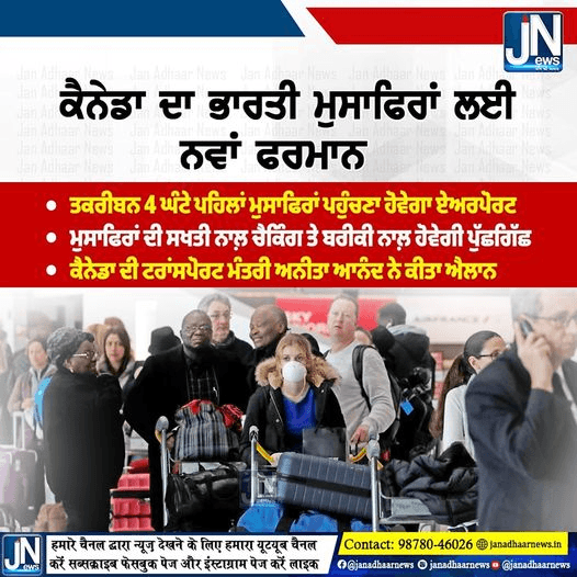 ਕੈਨੇਡਾ ਦਾ ਭਾਰਤੀ ਮੁਸਾਫਿਰਾਂ ਲਈਹੁਣ ਇਕ ਹੋਰ ਨਵਾਂ ਫਰਮਾਨ :