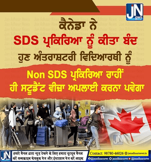 ਕੈਨੇਡਾ ਵਿੱਚ ਪੜ੍ਹਨ ਜਾਣ ਵਾਲੇ ਅੰਤਰਰਾਸ਼ਟਰੀ ਵਿਦਿਆਰਥੀਆਂ ਨੂੰ ਕੈਨੇਡਾ ਸਰਕਾਰ ਦਾ ਇੱਕ ਹੋਰ ਝਟਕਾ | ਕੈਨੇਡਾ ਨੇ SDS ਪ੍ਰਕਿਰਿਆ ਨੂੰ ਕੀਤਾ ਬੰਦ ਹੁਣ Non SDS ਪ੍ਰਕਿਰਿਆ ਰਾਹੀਂ ਅਪਲਾਈ ਕਰਨਾ ਪਵੇਗਾ ਸਟੂਡੈਂਟ ਵੀਜ਼ਾ।