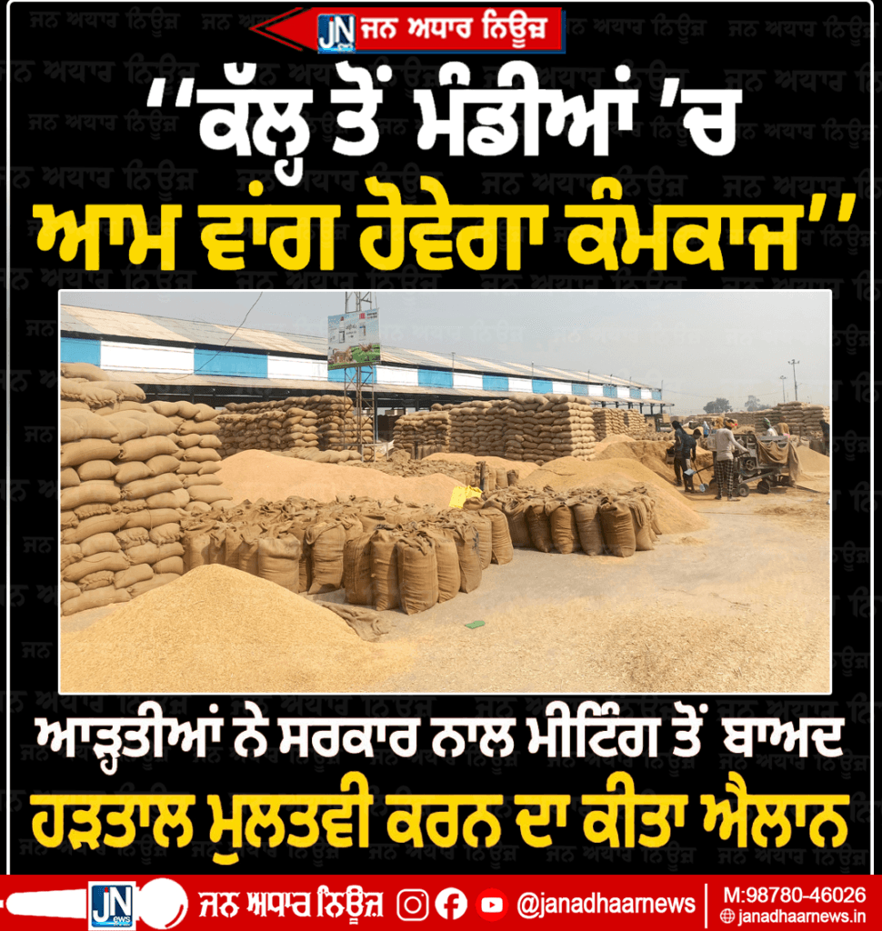 ਕੱਲ੍ਹ ਤੋਂ ਮੰਡੀਆਂ ‘ਚ ਆਮ ਵਾਂਗ ਹੋਵੇਗਾ ਕੰਮਕਾਜ