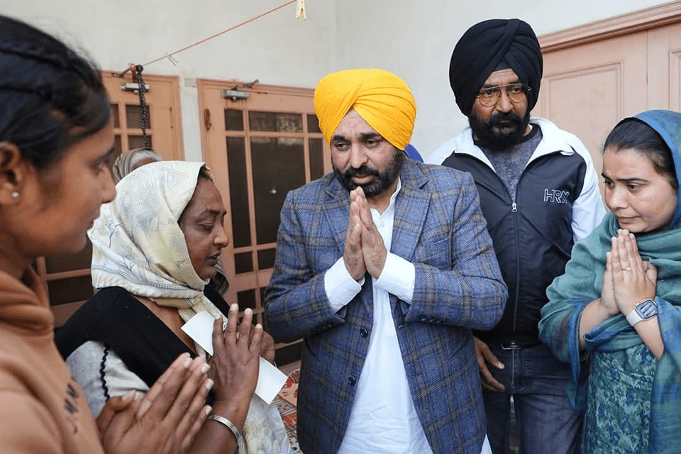 ਡਿਊਟੀ ਦੌਰਾਨ ਜਾਨ ਗੁਆਉਣ ਵਾਲ਼ੇ ਸੜਕ ਸੁਰੱਖਿਆ ਫੋਰਸ ਦੇ ਜਵਾਨ ਸ਼ਹੀਦ ਹਰਸ਼ਵੀਰ ਸਿੰਘ ਦੇ ਘਰ ਪਹੁੰਚੇ ਮੁੱਖ ਮੰਤਰੀ ਭਗਵੰਤ ਸਿੰਘ ਮਾਨ | ਪਰਿਵਾਰਕ ਮੈਂਬਰਾਂ ਨੂੰ ਸੌਂਪਿਆ ₹1 ਕਰੋੜ ਦੀ ਸਹਾਇਤਾ ਰਾਸ਼ੀ ਦਾ ਚੈੱਕ।