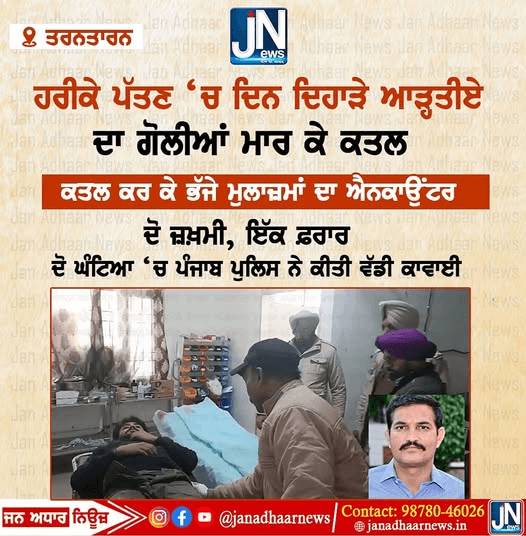 ਹਰੀਕੇ ਪੱਤਣ ‘ਚ ਦਿਨ ਦਿਹਾੜੇ ਆੜ੍ਹਤੀਏ ਕਤਲ ਦਾ ਗੋਲੀਆਂ ਮਾਰ ਕੇ ਕਤਲ ਕਰ ਕੇ ਭੱਜੇ ਮੁਲਾਜ਼ਮਾਂ ਦਾ ਐਨਕਾਉਂਟਰ , ਦੋ ਜ਼ਖ਼ਮੀ, ਇੱਕ ਫ਼ਰਾਰ ਦੋ ਘੰਟਿਆ ‘ਚ ਪੰਜਾਬ ਪੁਲਿਸ ਨੇ ਕੀਤੀ ਵੱਡੀ ਕਾਰਵਾਈ।